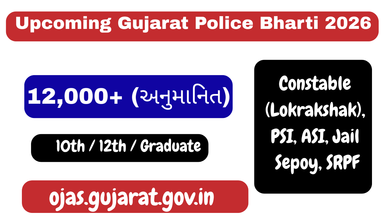 દર વર્ષે હજારો પોસ્ટ્સ માટે ભરતી થતી હોય છે, જેમાં Constable (Lokrakshak), PSI, ASI, Jail Sepoy, SRPF જેવી પોસ્ટ્સનો સમાવેશ થાય છે. આ લેખમાં અમે તમને Gujarat Police Bharti 2026 Notification, Qualification, Age Limit, Syllabus, Selection Process, Physical Test અને Online Form બાબતે સંપૂર્ણ માહિતી આપીએ છીએ.