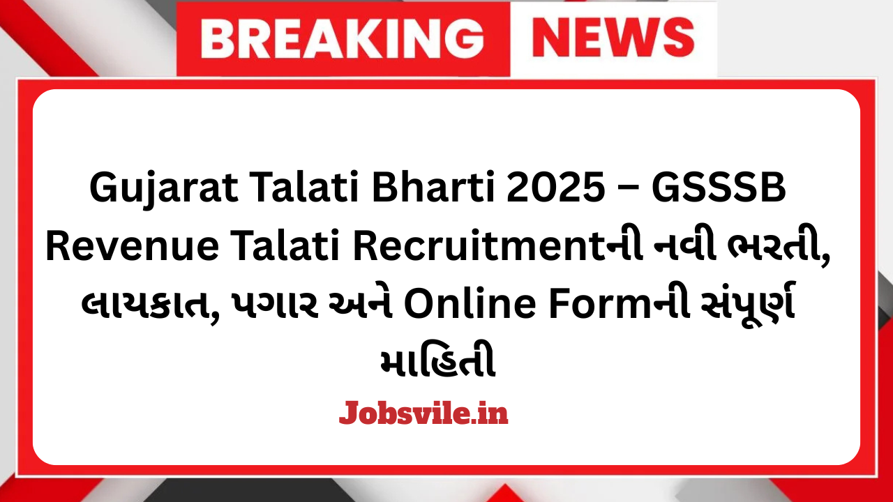 1 thought on “Gujarat Talati Bharti 2025 – GSSSB Revenue Talati Recruitmentની નવી ભરતી, લાયકાત, પગાર અને Online Formની સંપૂર્ણ માહિતી”