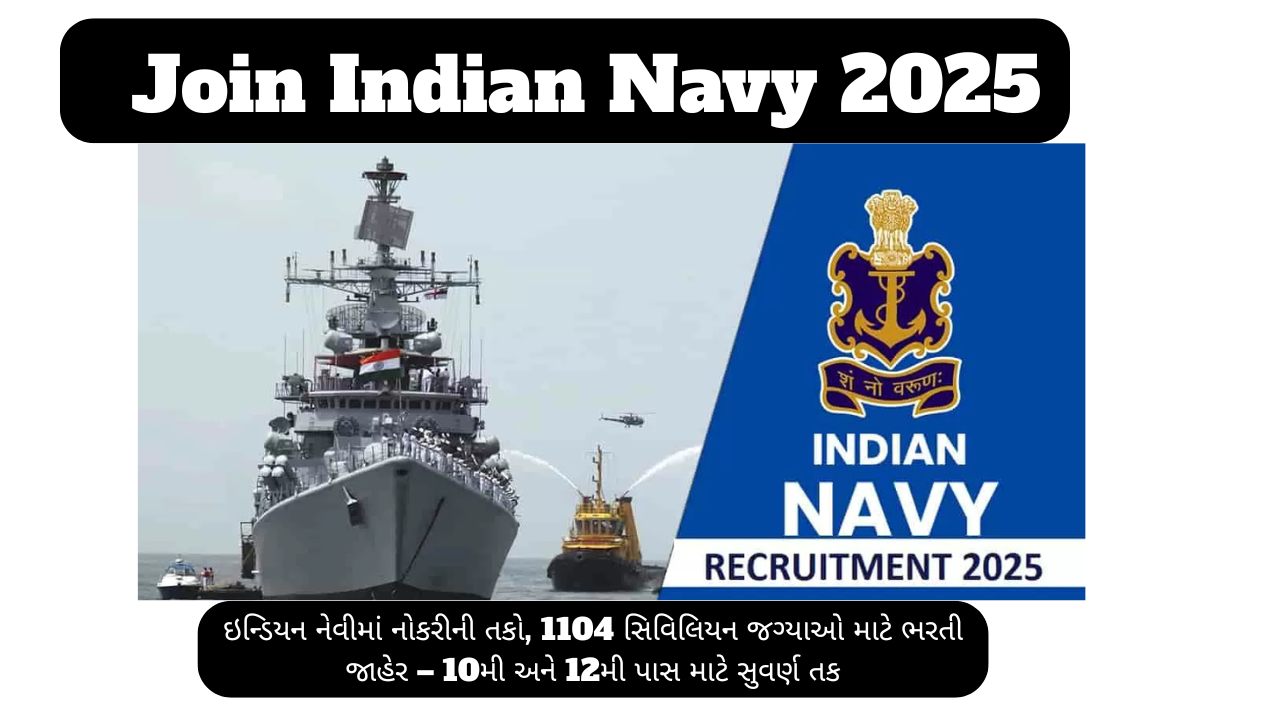 Join Indian Navy 2025: ઇન્ડિયન નેવીમાં નોકરીની તકો, 1104 સિવિલિયન જગ્યાઓ માટે ભરતી જાહેર – 10મી અને 12મી પાસ માટે સુવર્ણ તક